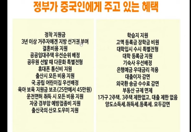 - 공공임대주택 우선순위 : 중국인에게 공공임대주택을 우선적으로 제공하는 정책이 있습니다.