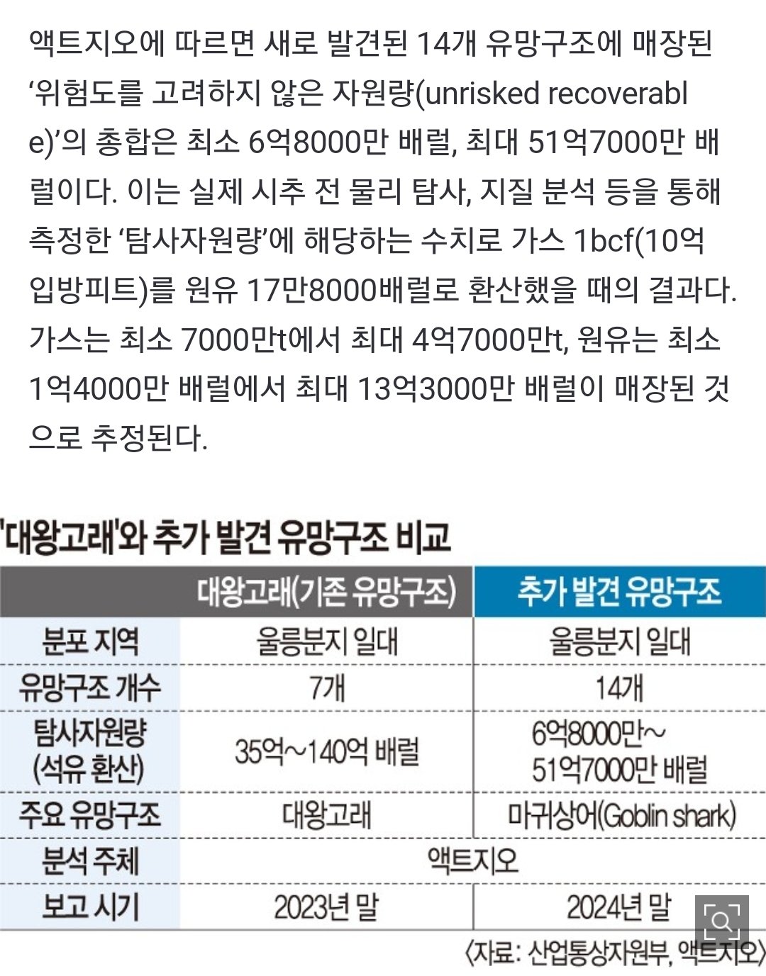보고서에 따르면, 이번에 발견된 유망구조는 총 14개로, 최대 51억 배럴에 달하는 가스와 석유가 매장되어 있을 가능성이 있다고 해요. 이는 울릉분지의 자원 개발에 큰 기여를 할 것으로 기대되고 있어요. 특히, '대왕고래'라는 이름은 이 구조의 잠재력을 상징적으로 나타내는 것 같아요.